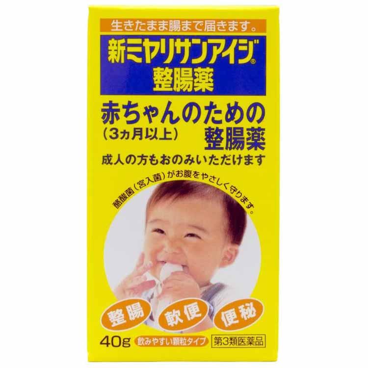 | 第3類医薬品 | 新ミヤリサンアイジ整腸薬 | 散剤 | (6g中) 宮入菌末 162mg、ビタミンB2、ビタミンB6等 | ドラッグストア・ECサイト |
